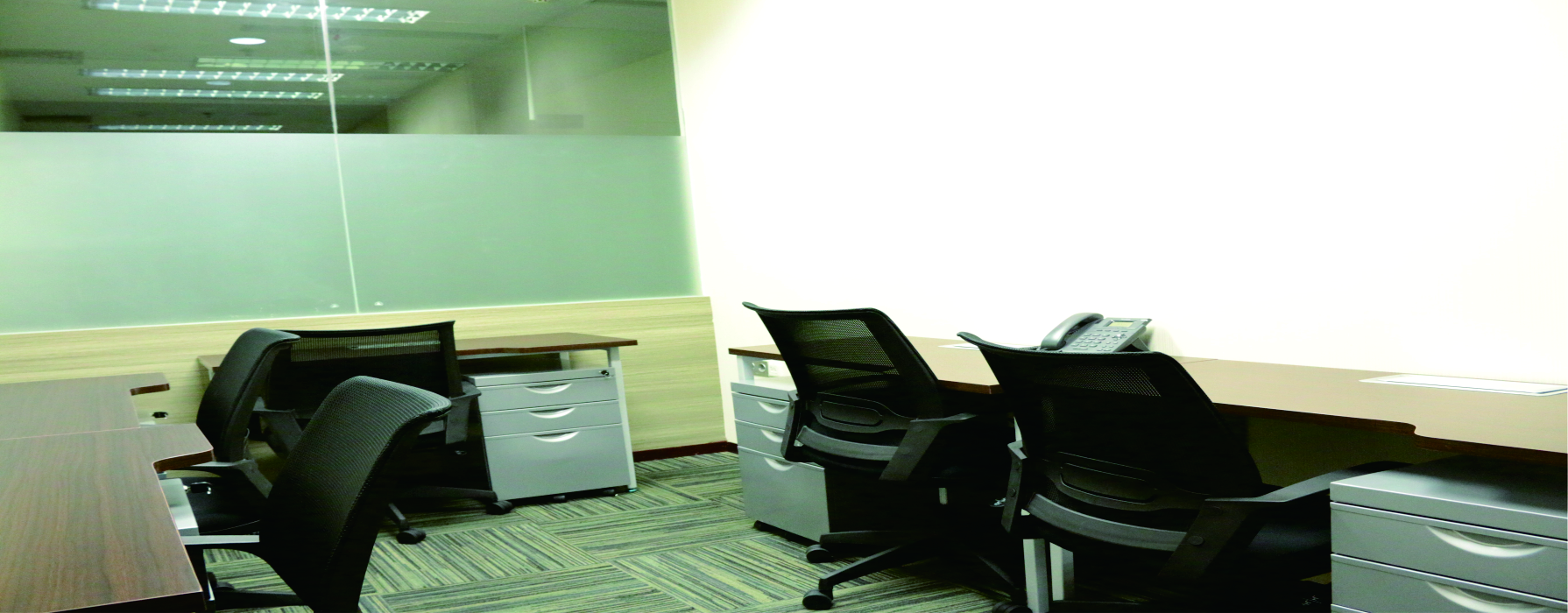 Office with Manager suite and splendid view to the heart of Podomoro City Complex. Equiped with 5 working stations